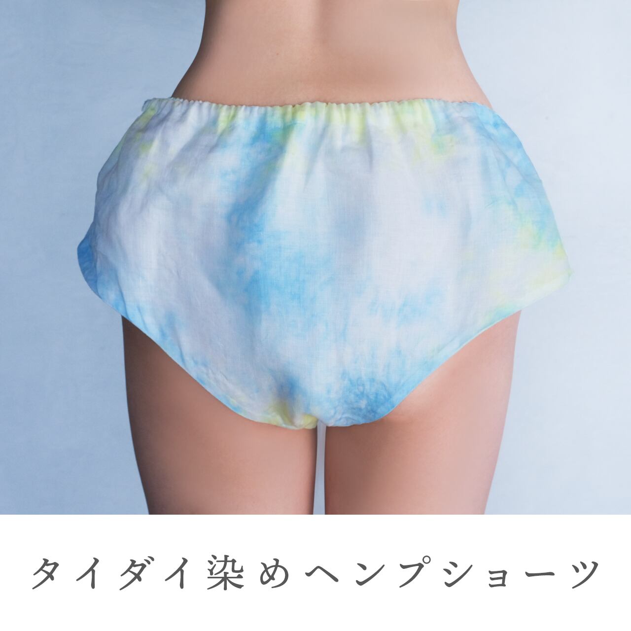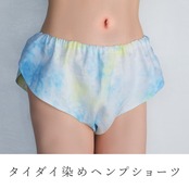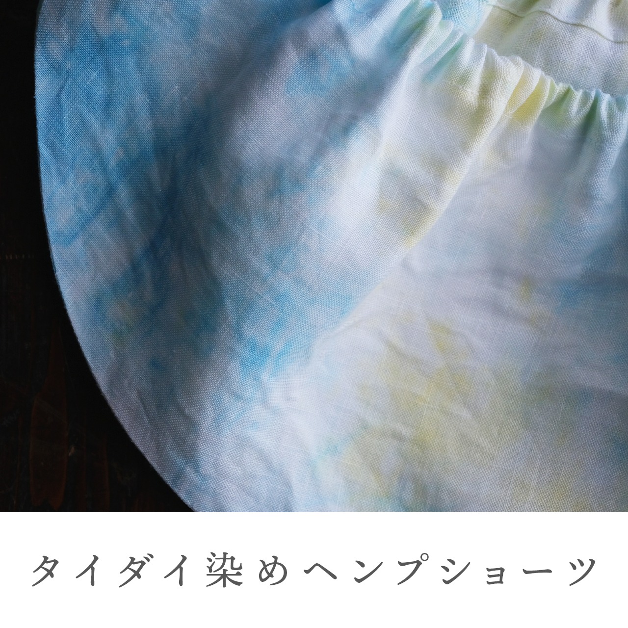 ヘンプ100%タイダイ染めショーツ【ミズイロ×キイロ】